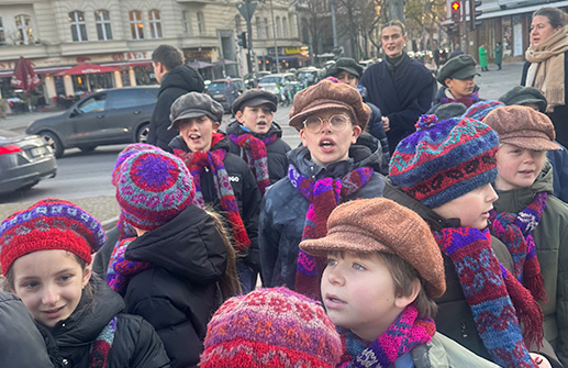 Wer es nicht bis zum nächsten Konzert abwarten kann: Einfach mittags über den Ku’damm spazieren! Die Kinder singen regelmäßig auf dem Weg zum Sportplatz. Wenn ihr eine fröhliche, lautsingende Kindertruppe seht, die durch die Straßen zieht – dann sind wir das!